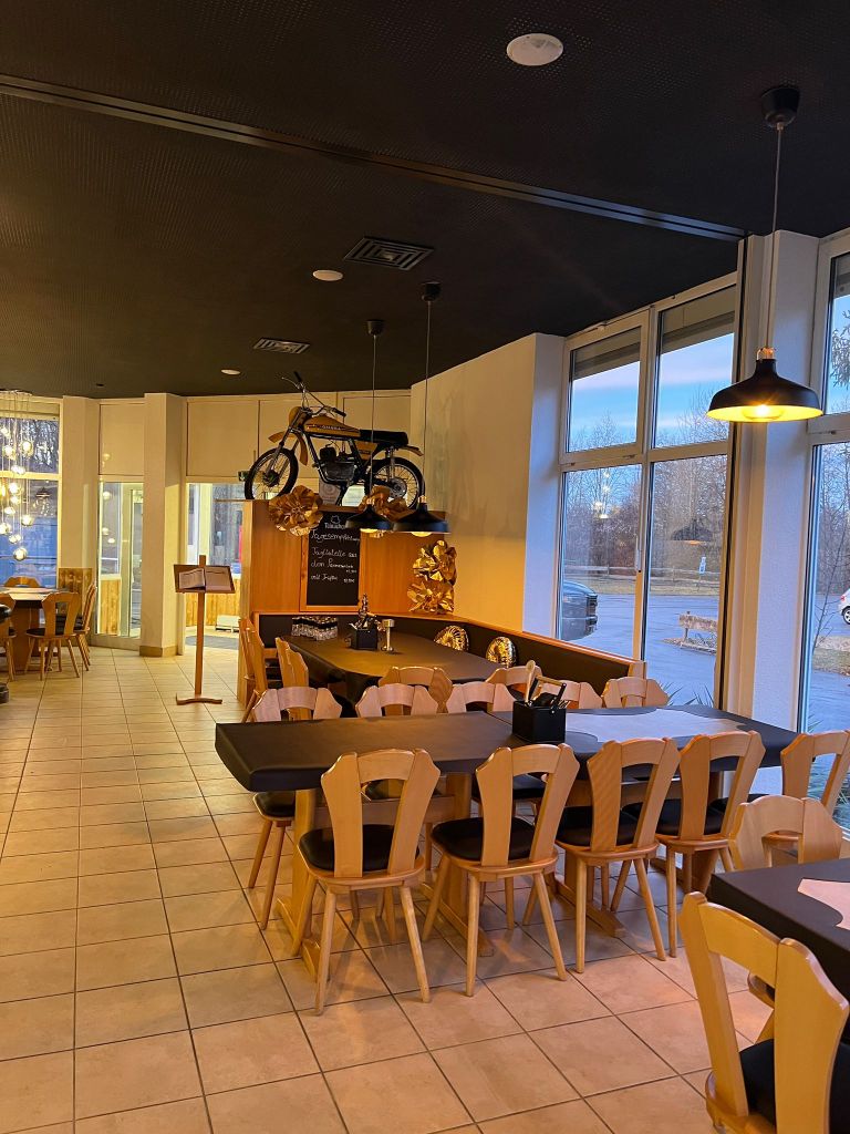 Freundlich, hell, variables Nebenzimmer, sonnige Gartenwirtschaft, Kinderspielplatz, keine Parkprobleme.